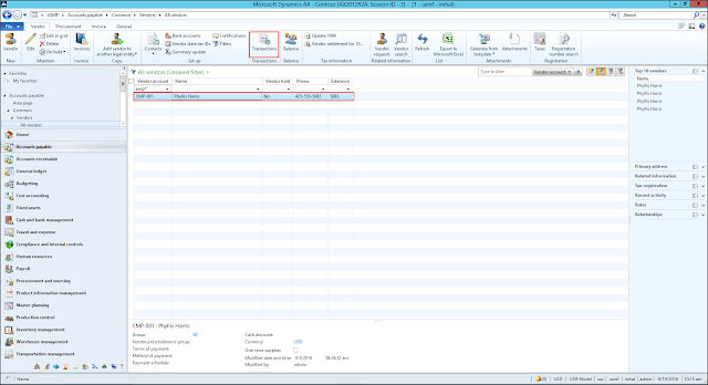 7-Go to Accounts payable -> Common-> Vendor -> All vendors -> Create new vendor account for the employee select person in the type fill the name